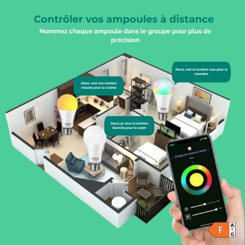 Compatible Alexa, Google Home et Siri Shortcuts, allumez, éteignez ou changez la couleur de votre éclairage par une simple commande vocale.